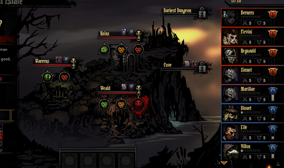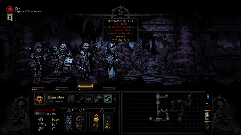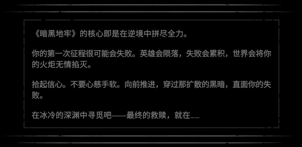 在1代中,每次下地牢的选择十分微妙。可能你的心腹英雄都在酒馆或者教堂里解压治病,所以只是凑一堆马车里来的新人随便玩玩,死了也无所谓。可能这是你第一次下最后的暗黑地牢,凑齐了天时地利人和就看这一发了。在地牢中,每往前一步都是压力,特别一开始不熟的时候很容易被陷阱和某些敌人jump scare到。在火炬逐渐熄灭,补给掏空,状态不满的时候,分分钟有种”算了吧赶紧上岸吧“的冲动。