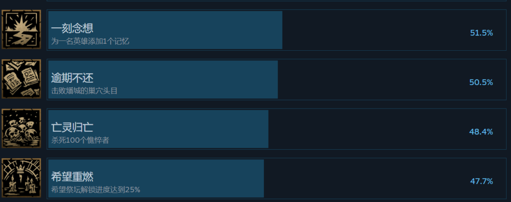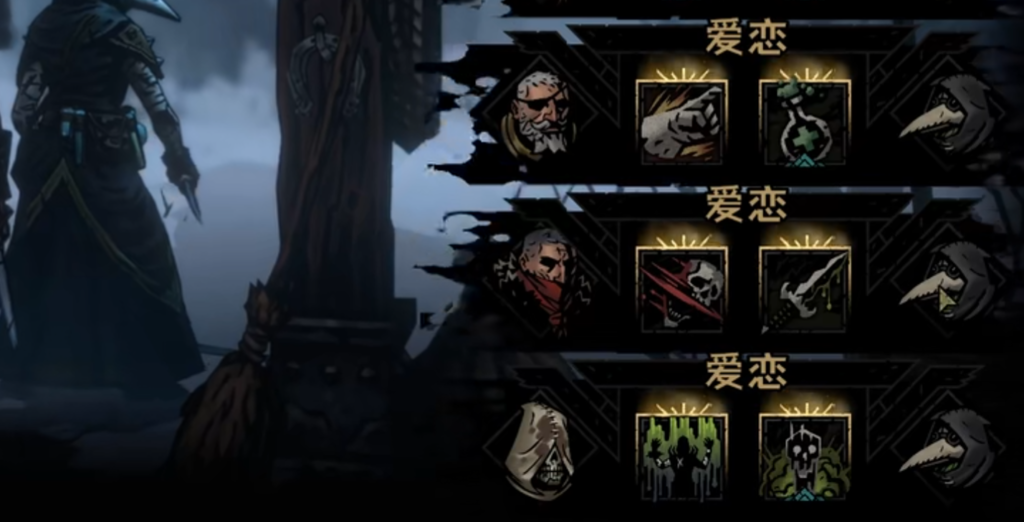 和许多Roguelike一样,在想着要不要尝试某一种build的时候,很重要的数据就是在之前的run里面各个方面的表现(比如饰品,技能,角色,关系造成的伤害,治疗,特殊状态等等)。哪怕不做成特别硬核的表格系统,大致直观上的比例也可以让玩家产生“要不我下一轮试试X+Y?”这种想法。